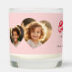 Scented candle featuring customizable text "Mom we love you", a red heart and the kid's names along with 4 customizable photos. Pink or custom color background.