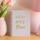 Own your hustle with our 'Mom Wife Boss' Gold & Pink Typography Planner. Juggling roles like a pro! 🌸🖤 #BossMomLife #2024Planner #OrganizedLife