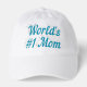 Hat with World's #1 Mom in 3D sky blue text.