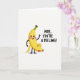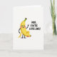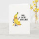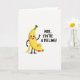 This card features a bright yellow fruit character on the left side of a white background, with part of its peel hanging down around its base like a little skirt. The character has shiny black eyes, rosy pink cheeks, and a wide smile that feels like a friendly wink toward someone it cares about ❤️. One thin dark arm lifts in a welcoming wave, while the other rests calmly at its side, giving it an easy, companionable pose. Open space fills most of the background, making the character feel like it’s stepping forward to share a light, affectionate joke. On the right side, large dark text reads “MOM, YOU’RE A PEELING!” in all caps, set at about mid-height so it lines up with the character’s face. The simple color palette keeps attention on the sunny fruit and the message, with the pink cheeks adding a gentle, caring touch 🌼. A small soft shadow sits directly beneath the character’s short dark legs on the white surface.
