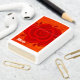 A red rose floral illustration in a painterly impressionistic style with a warm color palette. It is captioned with the word Mom. An easily personalized and fully editable template design.