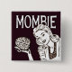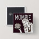 Classic 50s mom wearing an apron and happily serving up... Brains? Well that gives new meaning to being a "June Cleaver" mom! Text: MOMBIE Image: Retro zombie housewife serving up brains for dinner.