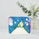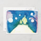 This postcartoon from LostMilk shows a beautiful scene. An insect with his child is in the moonlight. LostMilk called the picture longing. In front of a blue sky, the two are on a mountain. The trees frame the scene in Lila and Red. The floating balls supported the mystical atmosphere. The picture invites you to dream and remember old children's book classics. A motif reminiscent of St. Petersen's moonway and not only suitable for children.