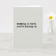 This card features a light grey background with a faint, fabric-like texture and a barely-there grid that feels gentle and steady. Centered in the middle are two lines of black text that read, “momming is hard, you’re killing it,” set in a slightly worn, classic serif style that looks like it was pressed onto the paper. The lettering sits with lots of open space around it, letting the message breathe and land like a supportive squeeze ❤️. The softened edges of the letters add a human touch, like a friend speaking plainly but kindly when you really need it. The simple layout keeps your eyes on the words, while the quiet background adds warmth without pulling attention away. There are no extra illustrations, so the focus stays on the candid encouragement, like a small nod of solidarity from one caregiver to another 👩. The two-line phrase is centered horizontally, with the top line just above the midpoint and the second line directly beneath it in the same black ink.
