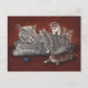 A postcard from my painting 'Mommy Cat' of a mother cat trying to get in a bit of sleep while her little kittens are climbing all over her. What's a mom to do?