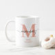 Family monogram mug for new parents which you can personalize with the date they became parents. This design has elegant handwritten script, modern typography. Mug has a monogram initial M with the name mommy which you can personalize.