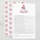 Add a fun and interactive touch to your celebration with this “Mommy Knows Best” baby shower game card. Designed with sweet cherry and bow accents in a modern red theme, this printable game invites guests to test how well they know the mom-to-be. It’s a perfect icebreaker that brings laughter and memorable moments to your event. Designed and illustrated with love by Kristine Lee www.kristineleedesigns.com