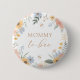 Let everyone know you're the mommy-to-bee with this sweet button, featuring colorful flowers and bumblebees.