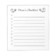 A cute floral to-do checklist for Mom with hand drawn flowers! This handy checklist notepad features a list of ten check boxes with lines to write on, forty easy tear-away pages, and hard cardboard backing for sturdy writing. Custom notebooks are perfect for the home or office.