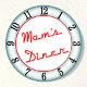 Moms Diner in neon red letters on a fun cooking decor kitchen wall clock, with black numbers on a light teal background giving this design a retro, 1950's faux-neon restaurant look.