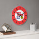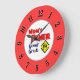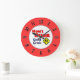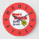 This kitchen saying clock reads Mom's Diner good grub in retro red and blue letters with a hamburger on yellow. The numbers are on a red outside face. A retro restaurant advertising art theme for you or your favorite short order cook. Click Customize it to change background colors and more.