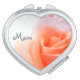 The Mom's Heart-Shaped compact mirror contains customizable text over a pastel peach, watercolor rose. Makes a great birthday, Mother's Day, Chrismtas gift!