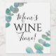 These fun wine bottle labels are decorated with watercolor eucalyptus leaves and the words "Mom's Wine Time!"