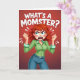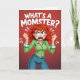 This design shows a digital illustration of an animated woman with copper-red hair and bright blue eyes, set against a deep red background that fades from darker to lighter tones. Her face is drawn with sharply furrowed brows, flushed cheeks, and an open mouth showing stylized pointed teeth, like she’s mid-outburst but still a little funny. Both fists are clenched and lifted near her head, and thin white burst lines around her suggest a loud shout or a rush of pent-up energy. She wears a green collared shirt with pale teal cuffs and fitted blue jeans, keeping the scene grounded in everyday life. Across the top, large white uppercase text reads “WHAT’S A MOMSTER?” centered above her head, giving the moment a cheeky, affectionate edge ❤️. The intense red backdrop and her exaggerated expression create a teasing contrast, like the kind of dramatic complaint you’d share with a close friend who totally gets it 🌼. White radiating lines fan outward from her head against the red gradient background.