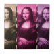 Da Vinci's masterpiece times three (x3), set off in colors of chocolate brown, raspberry, and plum purple... with thin vertical streamers of animal print.