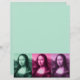 Da Vinci's masterpiece times three (x3), set off in colors of green, raspberry, and plum purple.