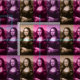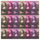 Da Vinci's masterpiece times three (x3), set off in colors of chocolate brown, raspberry, and plum purple.