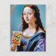 Mona Lisa like you’ve never seen her before—off-duty and delightfully chill. Against a calming light blue background and framed by a soft Zen circle, she enjoys a peaceful moment with a cup of bubble tea in hand. This postcard blends classical elegance with modern-day mood, perfect for sending a smile, framing as quirky art, or gifting to your boba-loving friends. A playful nod to mindfulness, mischief, and matcha pearls.