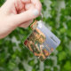 The key chain is made of metal and really sturdy. The flower design is really cheerful. The logo and colors are clear and crisp!