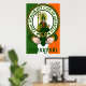 Your Monaghan clan motto badge features the famous Irish claddagh symbol, St. Patrick and traditional shamrocks with your historical ancient family motto in glorious and vibrant color.