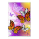 Orange, detailed monarch butterflies on light, purple, picturesque, painted background.
