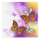 Orange, detailed monarch butterflies on light, purple, picturesque, painted background.