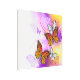 Orange, detailed monarch butterflies on light, purple, picturesque, painted background.