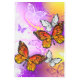 Orange, detailed monarch butterflies on light, purple, picturesque, painted background.