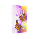 Orange, detailed monarch butterflies on light, purple, picturesque, painted background.