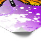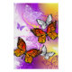 Orange, detailed monarch butterflies on light, purple, picturesque, painted background.