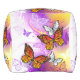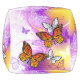 Orange, detailed monarch butterflies on light, purple, picturesque, painted background.