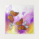 Orange, detailed monarch butterflies on light, purple, picturesque, painted background.
