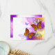 Orange, detailed monarch butterflies on light, purple, picturesque, painted background.