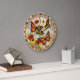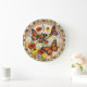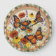 Invite the delicate beauty of a summer meadow into your home with the Monarch Butterfly Burlap Bloom clock. This charming timepiece features a high-definition graphic centered on three vibrant Monarch butterflies fluttering amidst a wild bouquet of poppies, daisies, and lavender. The artwork is set against a textured burlap-style background, providing a warm, rustic feel that is perfectly framed by a green and white gingham border with a scalloped orange edge. While the design masterfully captures the multi-layered textures of fabric, petals, and wings, this is a durable high-definition graphic application on a premium round clock face. It serves as a prestigious and refreshing accent piece for a farmhouse kitchen, sunroom, or any nature-inspired interior.