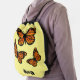 Monarch Butterfly Design - Personalize Name Light Yellow Drawstring Backpack