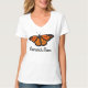 Original fine art design of a lovely Monarch butterfly by artist Carolyn McFann on a customizable v-neck ladies' shirt for all moms or anyone who loves Monarch butterflies.