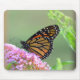 Photograph of a Monarch butterfly feeding at a butterfly bush.
