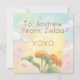 Spread some fluttering joy this Valentine's Day with our whimsical Monarch Butterfly card! Part of the Sweet as Honey: Pollinator Collection, this design features a vibrant hand-painted watercolor butterfly soaring through a soft, pastel-colored sky filled with delicate hearts. It's a perfect choice for nature-loving kids to share with their classmates or teachers. This flat note card is easy to personalize with your child's name for a stress-free school exchange.