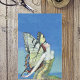 This vintage image has a red hair butterfly fairy dressed in a beautiful golden gown. Her colorful wings are those of a monarch butterfly. The background is a sky done in various shades of blue. See my store Art by MAR for matching products with this design.