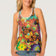 Women's All-Over Print Racerback Tank Top, Black Piping, S