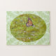 Original digital artwork featuring of a swatch of vintage Art Deco wallpaper-textile (from the public domain and reworked into a green toned pattern) and my original photograph of a Monarch butterfly on wildflowers processed in an artsy illustrated style in an oval shape centered on the pattern. This puzzle is 11” x 14” in the 'challenging' category with 252 pieces but you can size up or down as you please. These puzzles are well made of sturdy cardboard mounted on chipboard. They are printed in vivid colors and come in a custom gift box with the image design printed on top! Made in the U.S.A. and these make great gifts for children and adults.