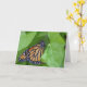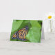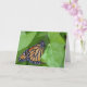 Note card with photograph of macro of a monarch butterfly on green leaves
