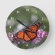 Monarch Orange Butterfly Floral Photo Round Clock