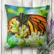 A close-up photo of a delicate, orange monarch butterfly on a white blossom. Feel the sunshine of a warm, sunny day whenever you use this stunning, colorful photography throw pillow. Makes a great gift for someone special!