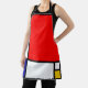 Great color and even though I ordered the kid size, it covers well enough to use during the holidays. I am not a big woman and prefer a shorter apron. I stand 5"6" and the length of the garment goes to mid-thigh. The tie straps fit well at my waist and even though there is no neck strap adjustment, the opening is plenty big enough. I am happy with the size and fit. I am sharing my apron with my 10 year old grandson, too! The color is vibrant and looks good, as shown on the website. The stitching looks strong and reinforced. Photographed is front side and back side of the apron, reinforced straps and coloring. My phone camera may not be the best at showing the details.
