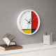 Custom wall clock with Mondrian style geometric pattern on red, yellow, black and white.