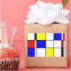 Mondrian art style.Piet Mondrian was a Dutch painter.Mondrian's style consisted of geometric shapes and primary colors. After all, every shape can be created from the basic geometric shapes and every color can be created from the primaries - red, yellow and blue.