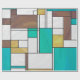 Mondrian Brown Yellow Teal Print Wrapping Paper