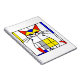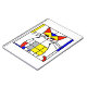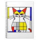 Abstract colorful geometric Mondrian style illustration of a cat with white, yellow, grey and red squares and black lines
