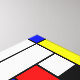 A simple minimalist geometry design inspired by the De Stijl neoplasticism art movement, with bold black lines and white, red, blue, and yellow squares and rectangles.